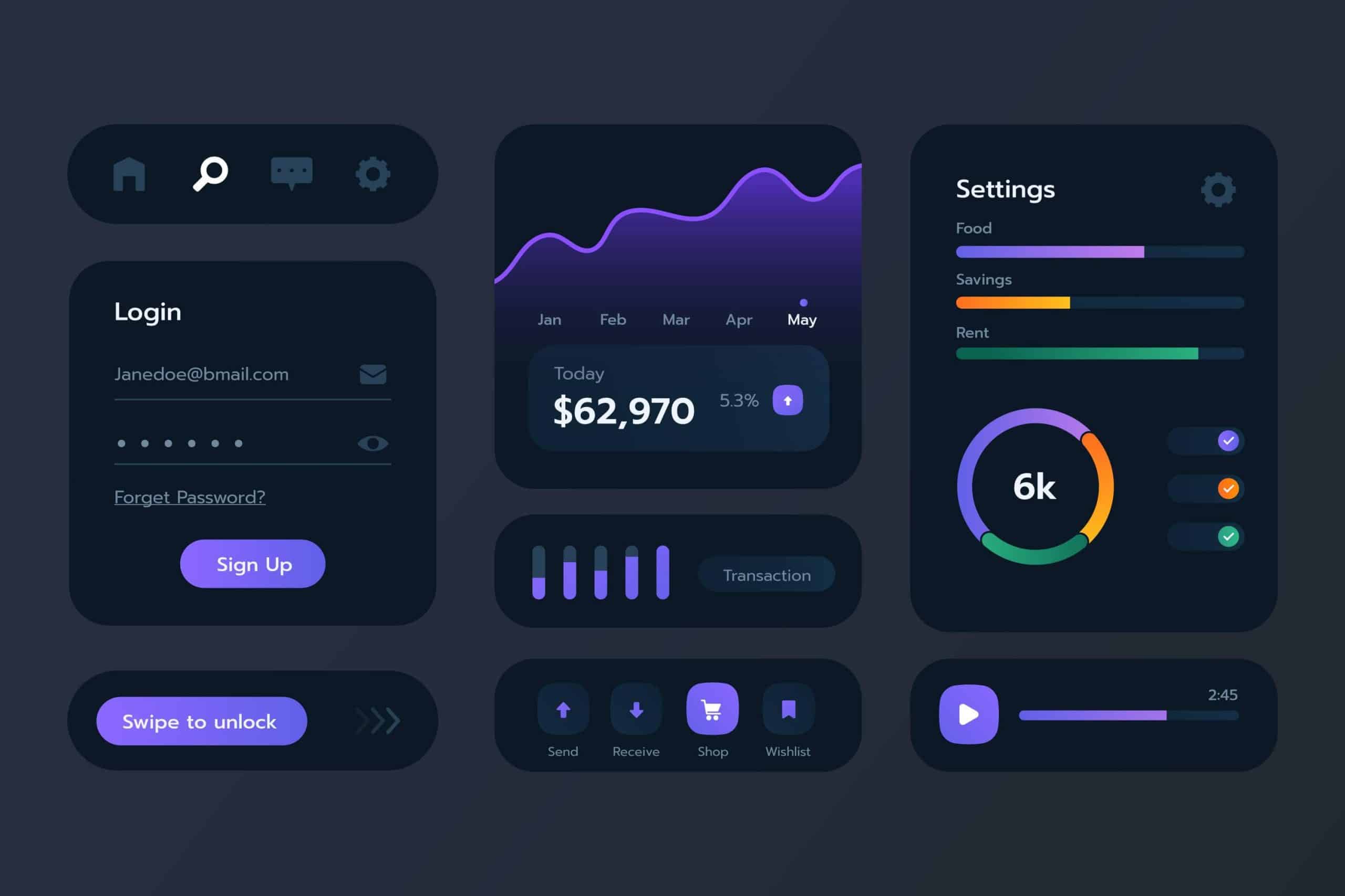 - عناصر تعاملی (Interactive Elements): مانند دکمهها، منوها، فرمها و آیکونها.